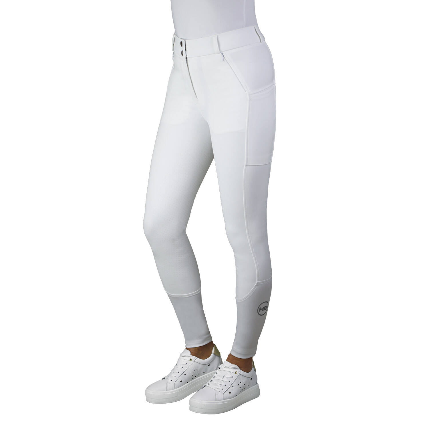 Bryczesy w sportowym stylu, wykonane z elastycznego materiału.