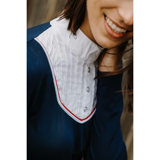 - Kontrastowe wstawki z popeliny z przodu z ozdobnymi guzikami