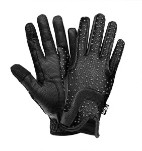 Spód dłoni i wzmocnienia rękawiczek wykonane są z antypoślizgowej, cienkiej, syntetycznej skóry zapewnia pewny chwyt wodzy nawet w trudnych warunkach. Dzięki temu jeździec może zachować precyzję i stabilność podczas prowadzenia konia.