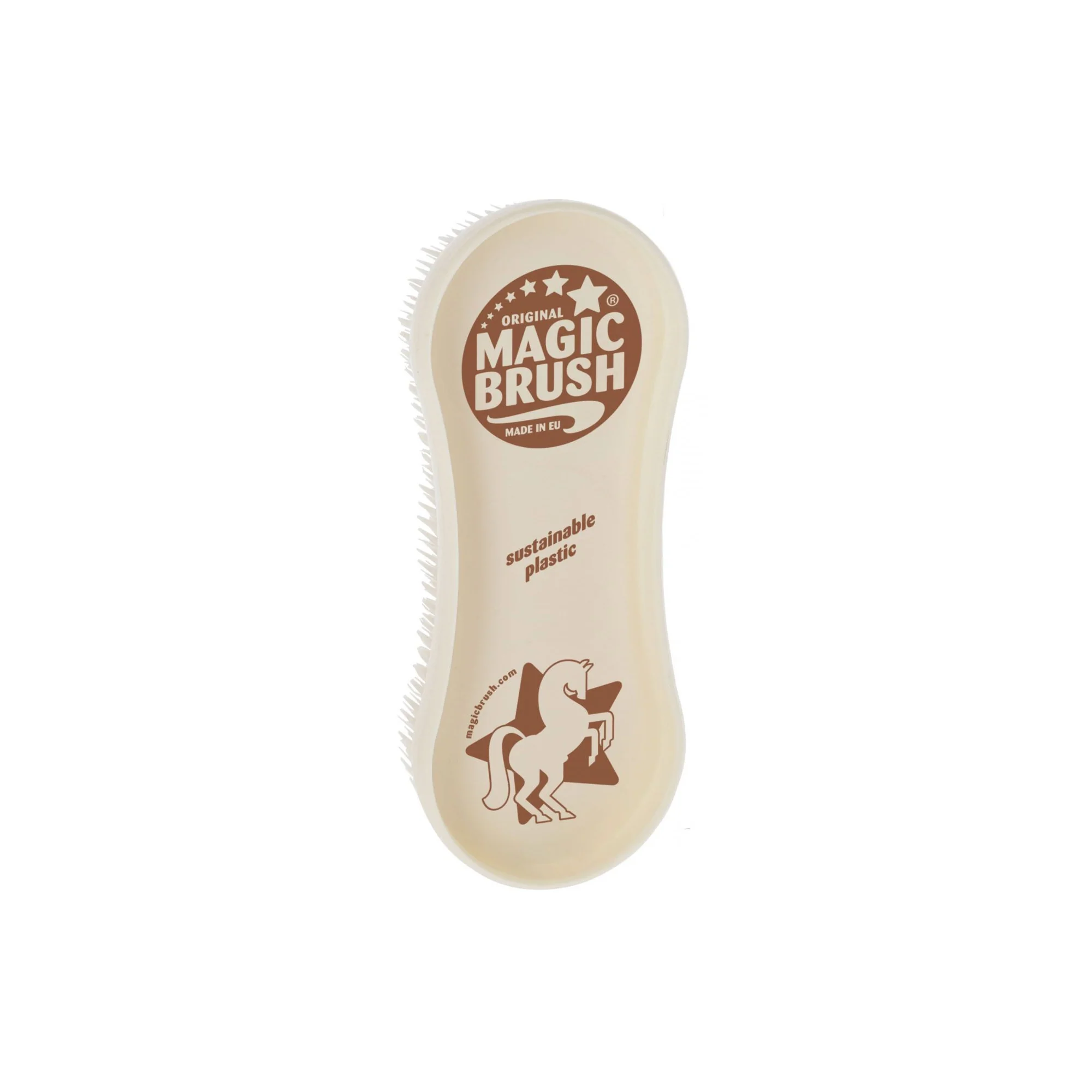 Średnio twarda szczotka Magic Brush Nature to sposób na wprowadzenie ekologicznego stylu życia w Twojej stajni. Szczotka skutecznie usuwa nadmiar brudu i martwej sierści, masuje konia podczas czyszczenia, a jej zewnętrzna część może posłużyć do zebrania nadmiaru potu lub wody z sierści. Szczotka została wykonana zgodnie z zasadami zrównoważonego rozwoju – w min. 50% ze słomy i cukru. Możesz ją moczyć, a nawet prać w pralce – w temperaturze do 60 stopni. Dzięki temu będzie spełniać swoje zadanie przez długi czas!